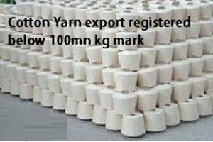 This is fifth straight month in August that Indian cotton yarn export has registered below the 100 million-kg mark due to slow-moving demand from China, while in the last fiscal year there was a surge by 33 percent, according to official and industry sources.