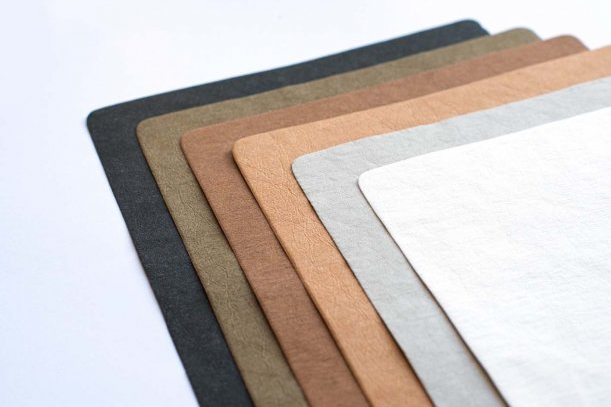 Texon Vogue is a cellulose-based material that is commonly used by manufacturers to create a variety of products such as bags and accessories, jeans labels, book bindings, stationery, luggage tags, and more. It's long been known as a versatile leather substitute, and it comes in a variety of colors, thicknesses, and finishes.