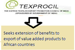 The newly-introduced Merchandise Exports from India Scheme has allowed duty credit scrip of two percent, three percent and five percent to exports of notified products to specific countries but does not include export of products such as the dyed and printed cotton fabric and made ups to African countries.
