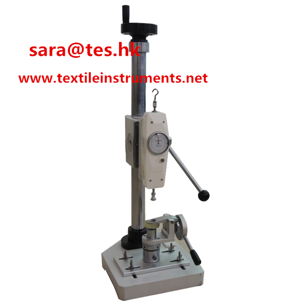 Snap Tester (Button Pull Tester), to determine the holding or breaking strength of prong-ring attached snap fasteners onto garments or toys, also as a Push Pull Tester for compression and tensile testing of small samples(special attachments are available).
