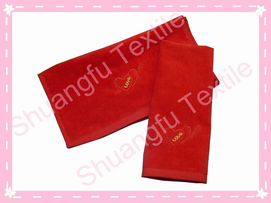 Good Description: 70% bamboo fabric +30%cotton Red Cut Velvet Towel/Wedding Gift Towel / Wedding towel Gift with Heart Embroidery