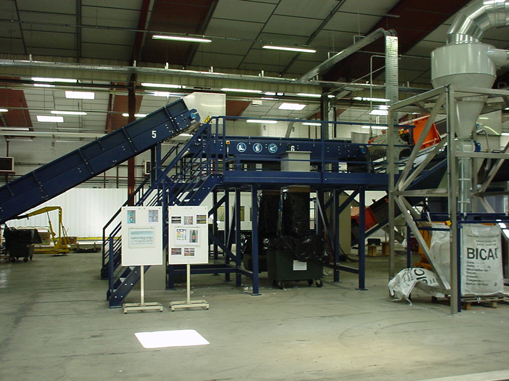 Operation principles: baled materials dispersed by debaler firstly, then sorted by workers on sorting table, the granulator crushes sorted materials into pieces. Wrappers are separated from the pieces by cyclone separator, then the spinner washes and dries the pieces. Pieces sorted by float sink separator again, then the washed pieces will be divided.