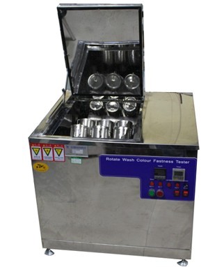 Rotawash Washing Fastness Tester is used for determining colour fastness of textile materials to washings. This is attained by mechanically agitating a specimen of textile in contact with pieces of specified adjacent fabrics in a soap – soda solution. Before being rinsing and dried. The change in colour of specimen and stains of the adjacent fabrics are assessed with standard Grey Scale.