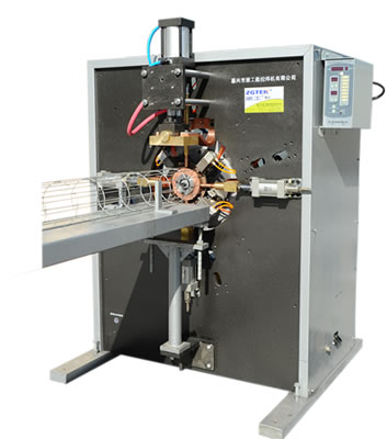 Horizontal welding, applicable for welding bag cages of random lengths, supporting stand included